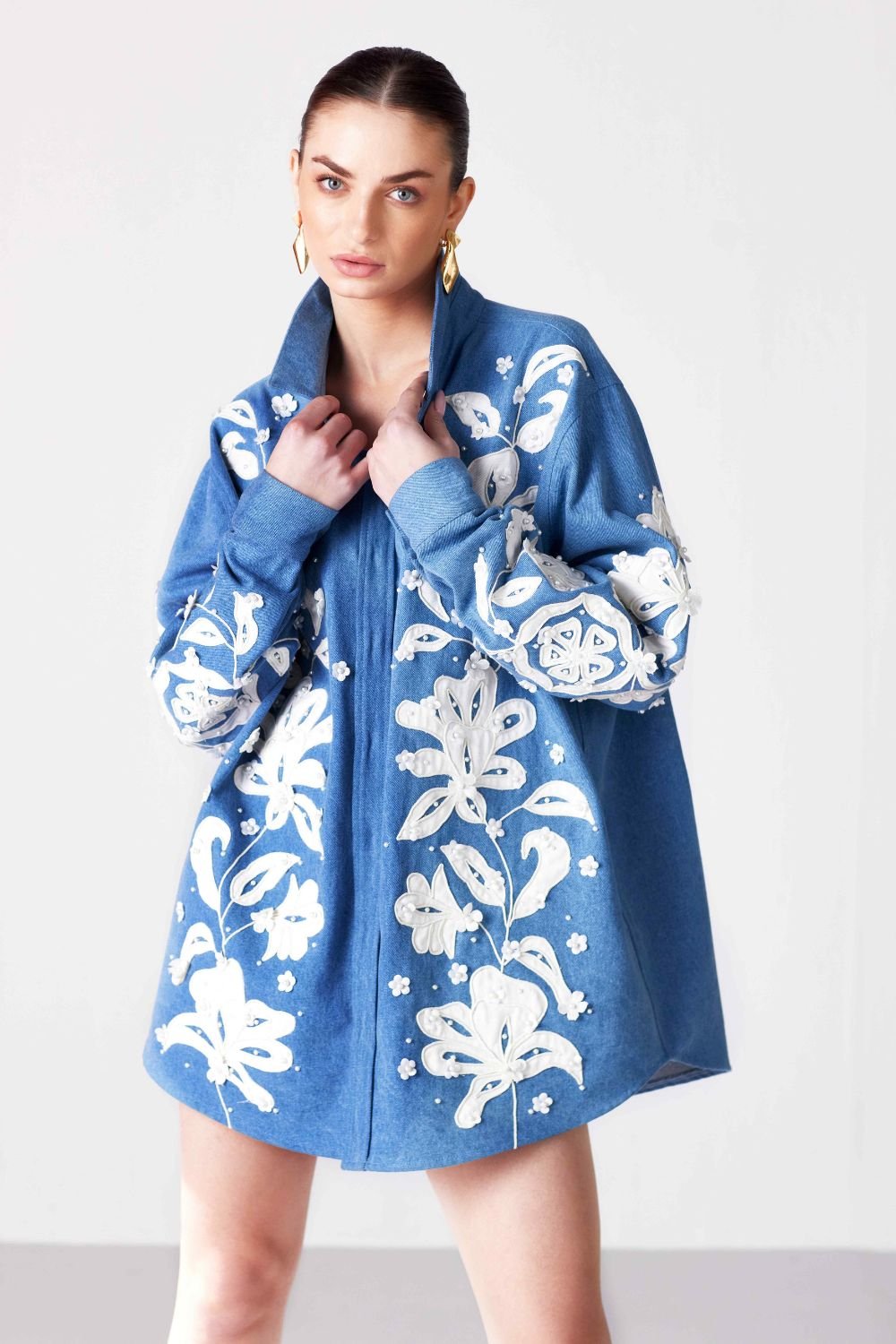 Whether styled for daytime sophistication or evening statement looks, this garment seamlessly blends modern design with timeless appeal. Attention to detail in the cut and finish makes it a versatile addition to any wardrobe.